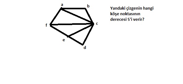 Derecesi 5 olan köşe c köşesidir. Yani doğru cevap C şıkkıdır.