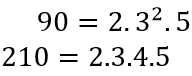 90 ve 210 sayılarının asal çarpanaları bu şekildedir.