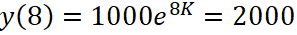 olarak bulunur. Sorudaki verilere göre c ve K sabitlerini belirlemeliyiz. Başlangıçta yani t=0 anında bakteri sayısı 1000 olduğundan y(0)=c=1000 olmalıdır. Diğer taraftan bakteri sayısının 8 saatte iki katına çıktığı verildiğinden