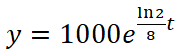 Bir bakteri kültüründe başlangıçta 1000 bakteri vardır. Bakteri sayısı her 8 saatte bir 2 katına çıktığına göre verilen bir anındaki bakteri sayısını veren ifade aşağıdakilerden hangisidir?