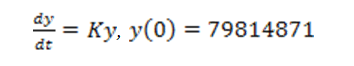 Nüfus değişimini veren diferansiyel denklem dy/dt=Ky şeklinde ifade edilmişti. 2016 yılı başlangıç olarak alınırsa t=0 anında nüfus y(0)=79814871, değişim oranı K=0,0135 olup 2023 yılındaki nüfus başka bir deyişle başlangıçtan 7 yıl sonraki nüfus