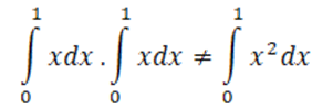 İntegrant iki fonksiyonun çarpımı biçimindeyse bunların integrali çarpıma giren fonksiyonların integrallerinin çarpımına eşit olmak zorunda değildir. Örneğin;