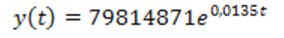 biçiminde bir üstel fonksiyon olduğu bulunmuştu. Buna göre başlangıç nüfusu ve artış oranının bu üstel fonksiyonda yerine yazılmasıyla 2016 yılından t yıl sonraki ülke nüfusu