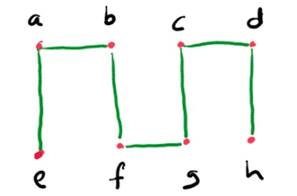 6 köşe noktası olan bir çizgenin tüm köşe noktalarının dereceleri 2,2,2,3,3,3 dizisi şeklindedir.