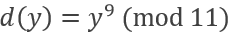 5.c?1 (mod 11) denkliğinden c?9 (mod 11) bulunur. O halde deşifre fonksiyonu d(y)=9(y-7) (mod 11) olur. Buradan d(3)=9(3-7)?8 (mod 11) bulunur.