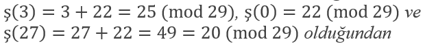 Türkçe alfabedeki 29 harf A=0, B=1, … , Z=28 şeklinde kodlansın. Aşağıdakilerden hangisi Sezar şifrelemesinde