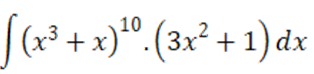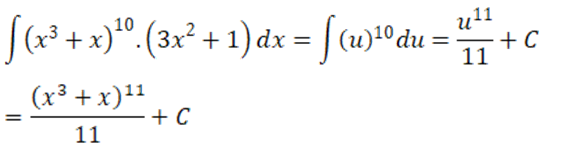 İntegralde u=x3+x değişken değiştirmesi yapılırsa, du=(3x2+1)dx olarak bulunur. İntegralde yerine yazarsak,