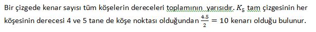 “Bir çizgedeki tüm köşe noktalarının dereceleri toplamı ----“ cümlesindeki boşluk bırakılan yere gelmesi gereken aşağıdakilerden hangisidir?