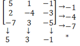 maksimum{-1, -4, -7}=-1, minimum{5, 3, -1}=-1. Maksimum ve minimum eşit olduğundan -1’in bulunduğu 1. satır ve 3. sütun denge ikilisidir. Doğru yanıt D seçeneğidir.