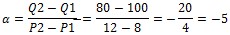 (P1,Q1)=(8,100) (P2, Q2)=(12,80) Öncelikle doğrunun eğimi hesaplanır: