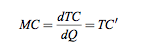 Üretim miktarının bir fonksiyonu olarak ifade edebileceğimiz toplam maliyet fonksiyonunu TC ile, marjinal maliyet fonksiyonunu ise MC ile gösterirsek, marjinal maliyet aşağıdaki gibi yazılabilir:
