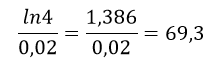 K ülkesinin 2012 yılındaki GSMH' sı x kadar gerçekleşmiştir. Bundan sonra her yıl ortalama %2 ile büyüyen K ülkesi, büyüme hesaplarında sürekli bileşen yaklaşımı kullanmaktadır. Buna göre K ülkesi GSMH rakamını yaklaşık kaç yıl sonra 4 katına çıkarır? (ln2=0,693 ; ln3=1,098; ln4=1,386; ln5=1,609)
