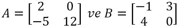 olarak verilmiştir. A ve B matrislerinin toplamı aşağıdakilerden hangisidir?