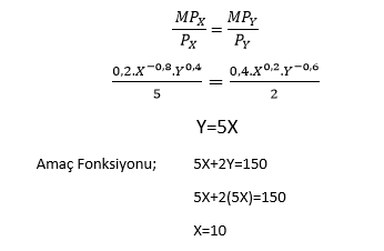Fayda fonksiyonu biçiminde olan bir tüketici x malını 5 TL ve y malını 2 TL den satın almaktadır. Bu iki mal için harcayabileceği toplam 150 TL si olan bu tüketicinin faydasını maksimize etmek için ne kadar y tüketmelidir?