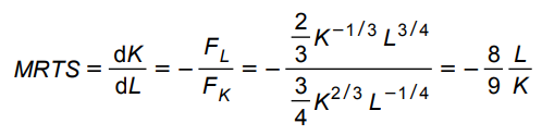 Marjinal teknik ikâme oranını bulmak için eş-ürün eğrisi kapalı fonksiyonunun türevini almamız gerekmektedir. Buradan ilgili kısmi türevler