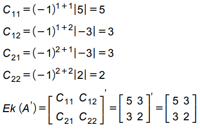 eşitliği yardımıyla bulunur. Buradan Ek (A') matrisi