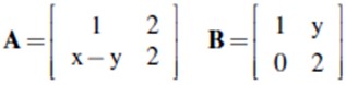matrisleri için A+B’nin simetrik matris olması için aşağıdaki (x,y) çiftlerinden hangisi yazılabilir?