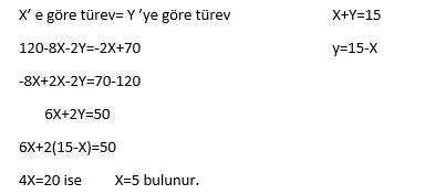 İlk olarak firmanın kârını maksimum yapan değerleri bulabilmek için kâr fonksiyonun birinci türevini sıfır yapan noktaları belirleyelim. Buna göre;