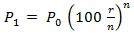 P0 > 0 (anapara) kadar para vadeli mevduat hesabına yatırılmıştır ve bu hesap r kadar sabit nominal yıllık faiz oranı önermektedir. Faiz ödemeleri yıl içerisinde düzenli aralıklarla n defa yapılmaktadır. Bir yıl sonunda anaparanın yeni durumunu gösteren hesap şöyle olur.