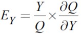 Gelirin esnekliğini hesaplamak için formülünü kullandığımızda öncelikle Q’nun Y’ye göre kısmi türevini bulmamız gerektiğini görüyoruz. Bu kısmi türev ise 0.05’e eşittir. Q ise 600 – 2*20-5*30+0.05*800 = 450 olduğunu buluruz. Bulunan tüm değerleri yerine yazdığımızda Ey= (800/450)x(0.05) = 4/45 talebin fiyat esnekliğini 4/45 olarak buluruz.