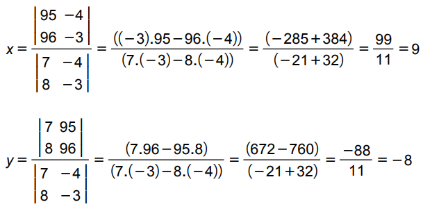 matrisleri yardımıyla ifade edebiliriz. Buradan Cramer Kuralı yardımıyla x ve y değerlerini