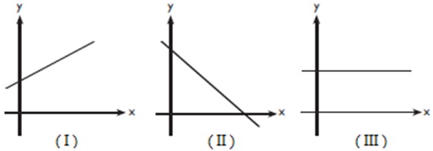 Bir fonksiyonun eğimi artış ya da azalışını anlamak için önemlidir. Eğiminin pozitif yani sıfırdan büyük olduğu durumda fonksiyon artış göstermektedir. Bu bir değerin kendinden önceki değerden daha fazla olduğu anlamına gelir. Eğimi pozitif olan bir doğru sağa yukarı yöne meyilli olur ve eğiminin değeri arttıkça doğru da dikleşir. Eğiminin negatif yani sıfırdan küçük olduğu durumda fonksiyon azalış göstermektedir. Bu yüzden bir değeri kendinden önceki değerinden daha az olduğu anlamına gelir. Eğimi negatif olan bir doğru sağa aşağı yöne meyilli olur. Eğimin sıfır olması durumunda ise tüm değerler sabittir ve x eksenine paralel olur. Bu bilgilere göre seçenekler incelendiğinde B seçeneğindeki I. eğimin pozitif yani 5, II. eğimin negatif yani (-3) ve III. eğimin 0 olduğu söylenebilir. Bu nedenle Doğru Cevap B seçeneği olur.