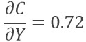 Marjinal tüketim eğilimi (MPC) tüketim fonksiyonunun eğimidir. Bir fonksiyonun eğimi ise fonksiyonun birinci türevi alınarak bulunur. Buna göre; Marjinal tasarruf eğilimi 0.72 olarak bulunmuştur. Marjinal tasarruf eğilimi ile marjinal tasarruf eğiliminin toplamı 1’e eşit olacağından.