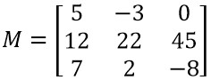 Matris, Bir köşeli büyük parantez içinde satır ve sütunlara yazılı sayı, değişken veya fonksiyonları temsil eden elemanlardan oluşan dikdörtgen biçiminde bir tablodur.
