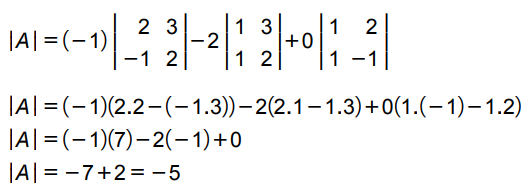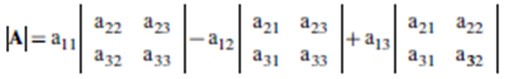 Bir matrisin determinantı o matrisin, herhangi bir satır veya sütunundaki elemanlarının kendi kofaktör değerleriyle çarpımları toplamıdır. 2x2 boyutundan daha büyük matrislerin determinantını hesaplarken işlem kolaylığı açısından sıfırların çok olduğu bir satır ya da sütun seçmek gerekir. Verilen A matrisi için ilk satır uygundur. A matrisinin determinantı şu şekildedir: Minörlerini açacak olursak: