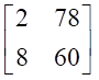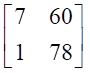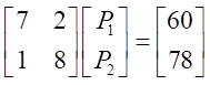 7.Soru2 eşitlik ve 2 bilinmeyenden oluşan denklem sistemimiz aşağıdaki gibidir. 7P1+2P2=60 P1+8P2=78 Cramer kuralı ile P1 ve P2 fiyatlarını bulmak için sistemi Ax=b biçiminde ifade edersek olur. Sistemin çözümü için oluşturulması gereken A1 matrisi aşağıdakilerden hangisidir?