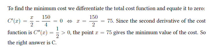 The first derivative must be equal to zero and the second derivative must be positive for a minimum value of a function. Thus: