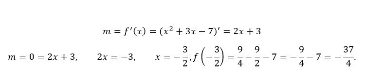 So, the slope of the tangent line to the graph is zero at (-3/2, -37/4). The answer is B.