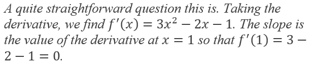 Which of the following is the slope of the graph of y=x3-x2-x+7 at the point x=1?