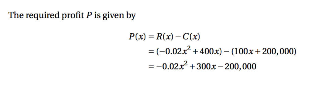 The profit is the revenue minus the cost. In this case the revenue is the demand multiplied by the price giving R(Q)=(32-2Q)Q=32Q-2Q2. Inserting revenue and cost into the equation for profit we obtain P(Q)=32Q-2Q2-2Q2=32Q-4Q2.