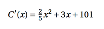 P(x) = R(x) – C(x) ; R(x) = (60 – (3 / 4) x) x ; C(x) = 120 + 10 x ; P(x) = -0.75 x2 + 50 x – 120 . pg. 161. Correct answer is D.