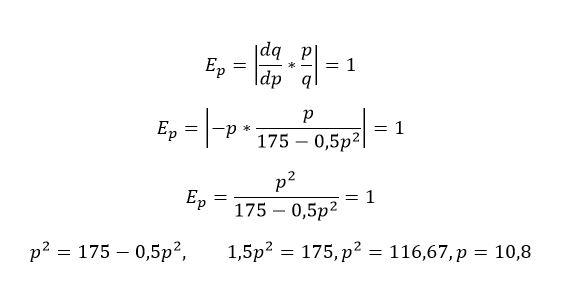 The bus company BusAway determines that when a return ticket between Eskişehir and Ankara costs p TL (0<p<120), the daily demand for tickets is q=175-0,5(p^2). Which of the following is the value of p for which the demand is of unit elasticity?