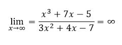 The function is a rational function. Since the degree o the numerator is greater than the degreeof the denominator, the following result is true: