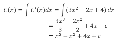 First, we’ll find total cost function by integrating marginal cost: