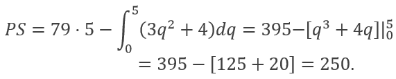 So the producer surplus is evaluated as