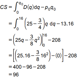 . Using the integral formula for the consumer surplus, we obtain: