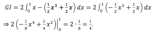 The solution is quite straightforward. Using the integral formula for Gini index, we get