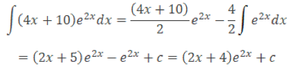Let us use the integration by parts method. Let u=4x+10 which gives du=4dx. Also, let dv=e2xdx which gives