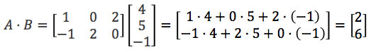 Since A is type of 2x3 and B is type of 3x1 then the matrix A.B must be type of 2x1. When we multiply these matrices we obtain