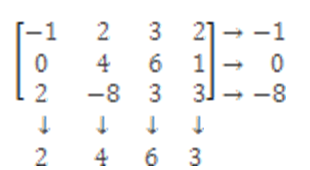 If in the game matrix, there exists an element which is smallest in its row and greatest in its column then this row-column pair is an equilibrium pair. For each row write the lowest element to the right, and for each column write the greatest element below the matrix: