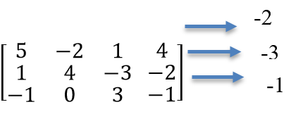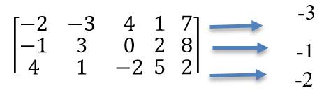 minimum {-2,3,4}=-2, minimum {2,-1,0}=-1, minimum {3,-2,5}=-2, maximum {-2,-1,-2}=-1. This number -1 corresponds the 2nd row.