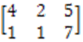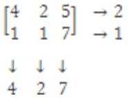 maximum {2,1} = 2, minimum {4, 2, 7} = 2. There exists an equilibrium pair (1st row, 2nd column). The number 2, which lies in the intersection of 1st row and 2nd column, is the lowest in the 1st row, is the greatest in the 2nd column.