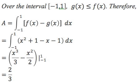 For -1≤X≤1, what is the area bounded by the graphs of the functions