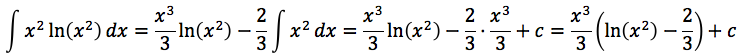 We use method of integration by parts by taking u=ln(x2) and dv=x2dx. Then we have
