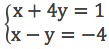 subject to the constraints x+4y≤1, x-y≤-4, x≤0, y≥0?