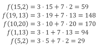 Which of the following goal functions yields the value 75 at (20, 5)?